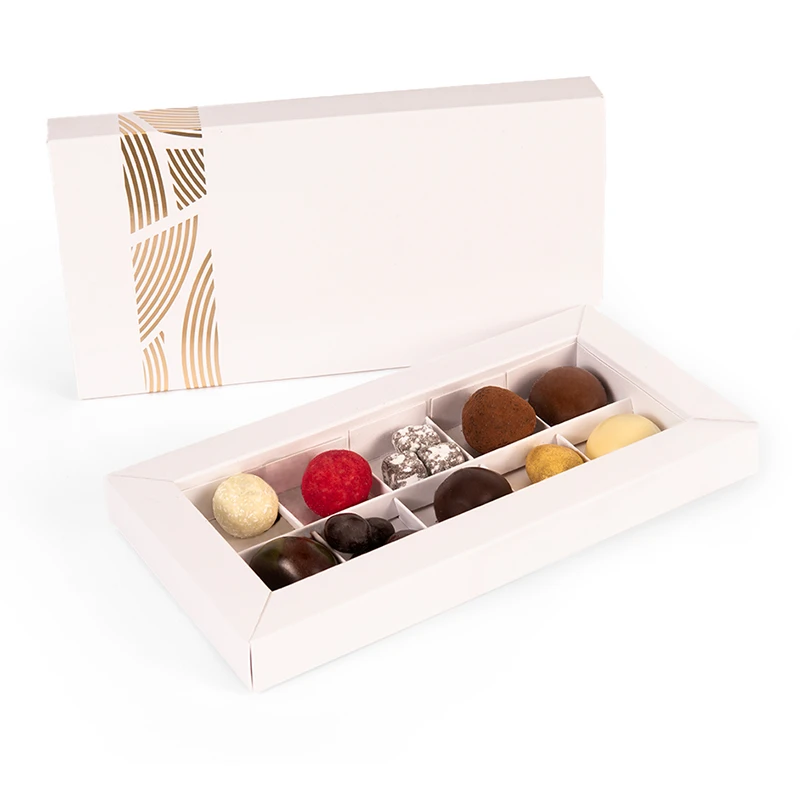 Disponemos de distintos formatos y estilos de cajas para dulces personalizadas, adaptables a cada necesidad: desde soluciones compactas ideales como bienvenida en hoteles, hasta estuches más completos para regalar en evento o como obsequio corporativo.